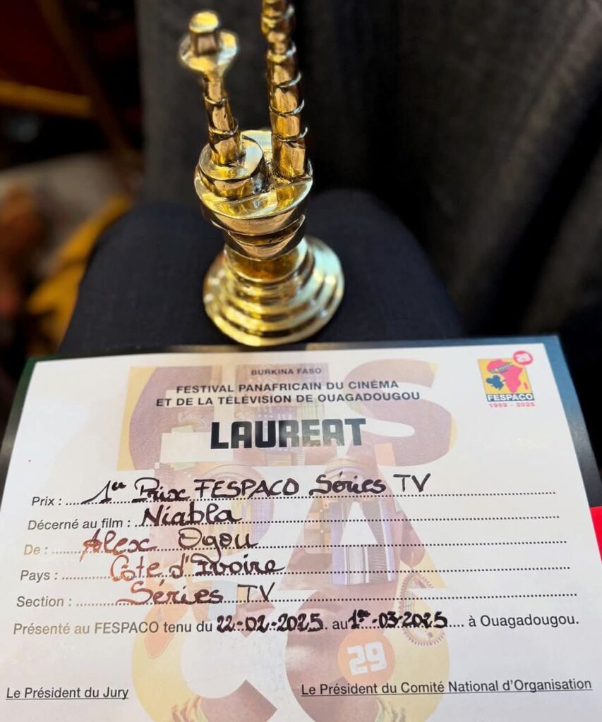 « Niabla » sacrée meilleure série TV. Réalisée par Alex Ogou, la série a été couronnée ‘’Meilleure série TV’’ de cette édition. Avec son scénario puissant et sa mise en scène soignée, ce film a conquis le jury, confirmant ainsi l’expertise et la créativité de son réalisateur, déjà salué pour ses précédentes productions.