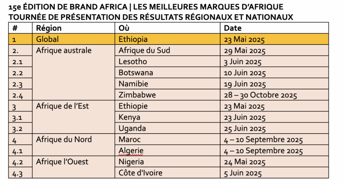 BRAND AFRICA ANNONCERA LES MARQUES LES PLUS ADMIRÉES EN AFRIQUE EN 2025, LES PAYS LES PLUS INFLUENTS ET LES MARQUES LES PLUS ADMIRÉES PAR LA GÉNÉRATION Z