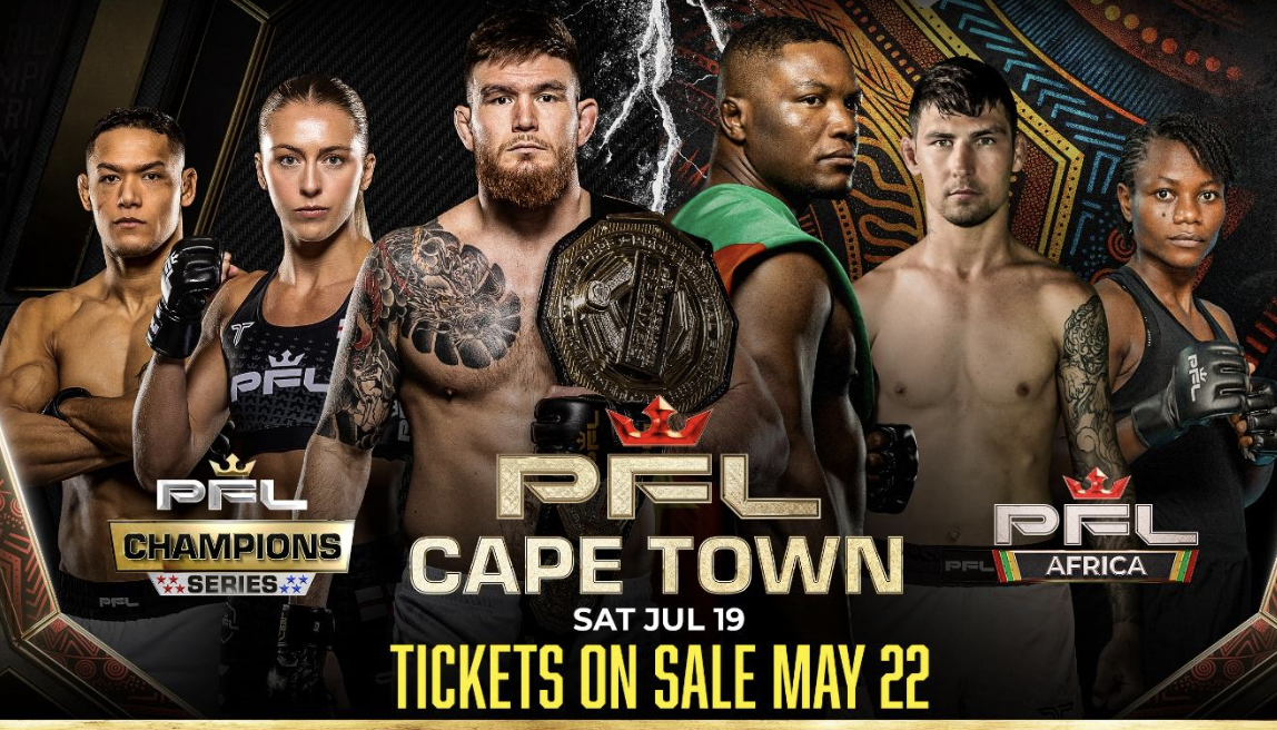 Les billets pour la PFL Afrique au Cap, désormais reprogrammée au 19 juillet, sont en vente ce jeudi 22 mai à partir de 10h (heure d’Afrique australe), alors que le continent s’apprête à écrire l’histoire du MMA.