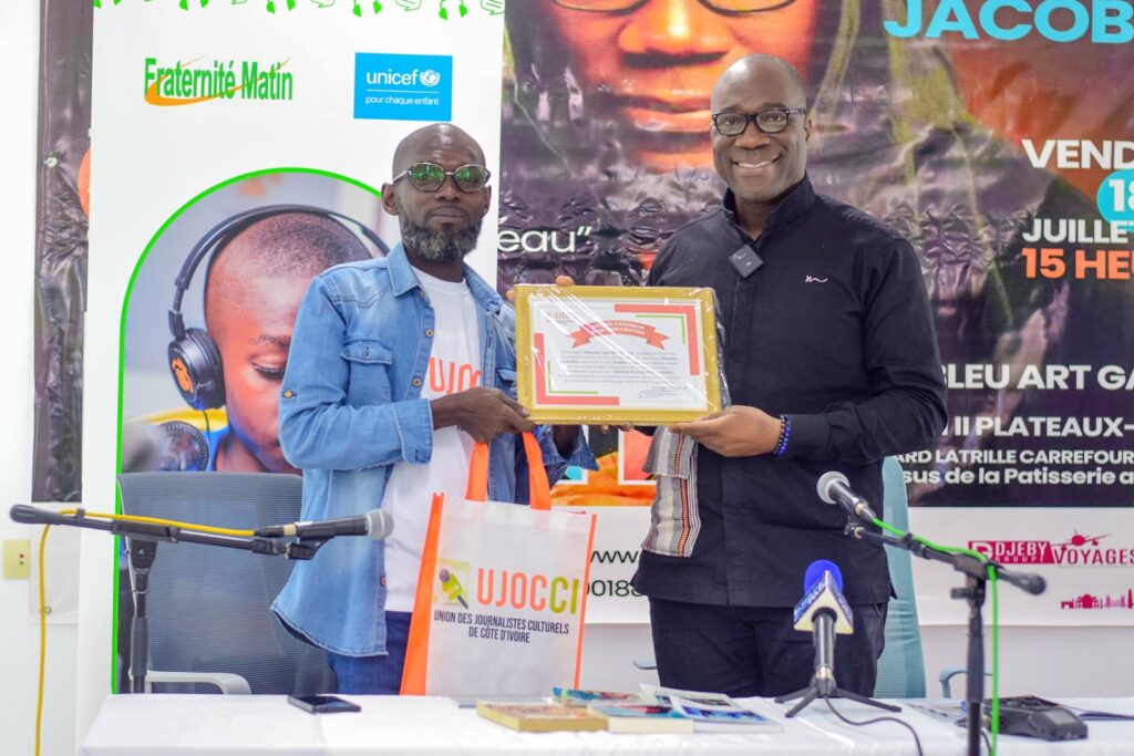 Le pinceau de Jacobleu a traversé les décennies, les tendances, les remous sociaux et les silences de l’âme. Vendredi 18 juillet 2025, c’est toute cette mémoire vivante que l’Union des journalistes culturels de Côte d’Ivoire (Ujocci) a décidé de célébrer, à travers un hommage vibrant organisé dans le cadre des Grands Plateaux. À la Jacobleu Art Gallery, aux II-Plateaux Aghien, journalistes et passionnés d’art ont été invités à explorer, en présence de l’artiste, « 30 ans d’histoire et de maîtrise du pinceau ».