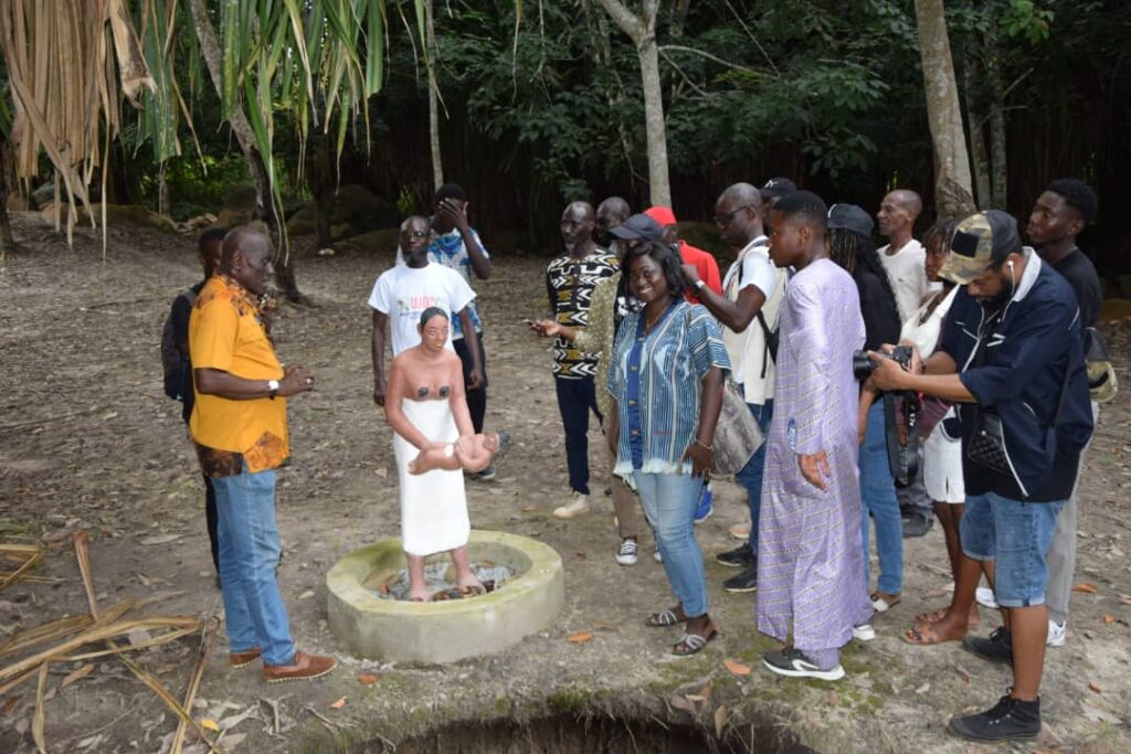 Autre moment fort de cette immersion : la visite du site historique de Kanga Nianzé, marqué par son passé lié au commerce triangulaire. Sur les rives de la rivière sacrée Bodo, là où les esclaves recevaient autrefois le « bain de l’oubli » avant leur départ vers l’inconnu, les journalistes ont été saisis d’un profond recueillement. Une stèle commémorative y a été érigée, faisant de ce lieu un espace de mémoire et de transmission pour les générations futures.