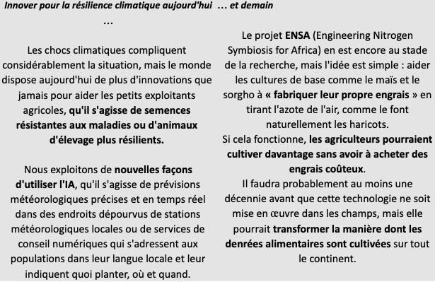 Non seulement cela aide les agriculteurs à nourrir leurs familles, mais cela renforce également l’autosuffisance de communautés et de pays entiers. C’est pourquoi, lors de la COP30, la Conférence des Nations Unies sur les changements climatiques, notre fondation s’est engagée à verser 1,4 milliard de dollars au cours des quatre prochaines années pour aider des millions de petits exploitants agricoles à s’adapter.