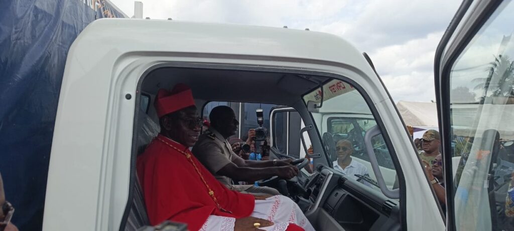 Dans une atmosphère mêlant ferveur religieuse et attentes sociales, le cardinal a procédé à la remise officielle des clés de deux véhicules destinés à renforcer les capacités locales de transport. Un car de 32 places pour le déplacement des personnes et un camion dédié au transport de marchandises ont ainsi été mis à la disposition de la Paroisse Sacré-Cœur de Kossandji dans le cadre du projet « Catho Express ». Une initiative portée par l’économat diocésain d’Abidjan (EDA) pour accompagner les communautés dans leur dynamique d’autonomisation.