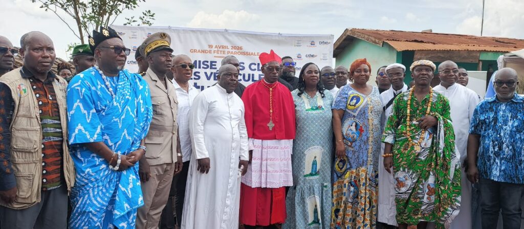 Clés brandies sous les applaudissements, regards pleins d’espoir et visages illuminés par l’enthousiasme collectif. À Kossandji, un village du département d’Alépé, la journée du dimanche 19 avril 2026 restera longtemps gravée dans les mémoires. Sur la place publique, transformée pour l’occasion en véritable espace de célébration communautaire, l’arrivée du Cardinal Ignace Bessi Dogbo n’a pas seulement marqué une visite pastorale. Elle a symbolisé l’aboutissement d’une démarche concrète visant à doter la communauté villageoise, d’outils capables de transformer son quotidien.